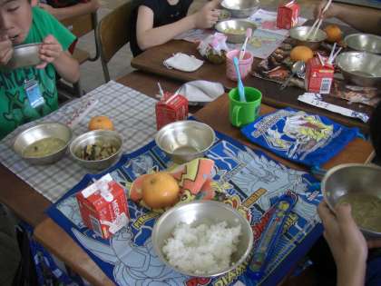 温かいスープに肉味噌のメニューでした。うれしく食べていました。