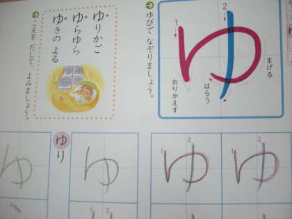 4月から頑張ってきたひらがなの練習があと2文字で終わります。今日「ゆ」を学習しました。残りは,「を」と「ん」です。