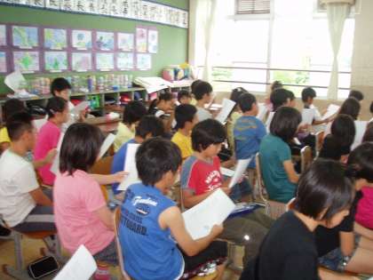 キャンプファイヤーで歌うので みんなで練習しました。