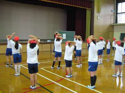 今日は,4年生になって初めてのプール…のはずが,天候と気温が思わしくなかったので,急きょ体育館での活動となりました。