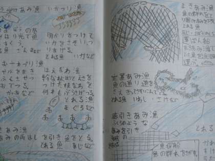 水産業の学習をしたときには、漁の仕方を調べてきた人もいました。