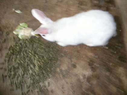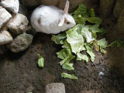 中間休みにみんなでうさぎにキャベツをあげました。
