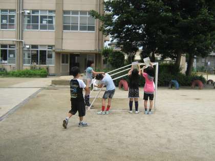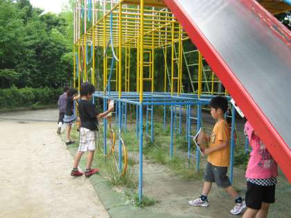 階段の手すりや,すべり台など,いろいろなものの角度がわかり,喜ぶ子どもたちの姿が見られました。