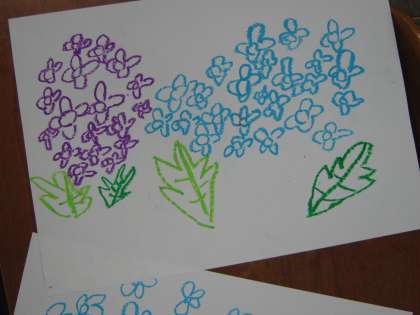 今度は,あじさいの絵を描きました。どんな色にぬるのかが楽しみです。