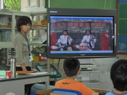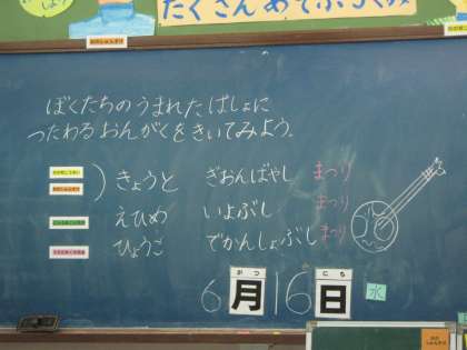 今、音楽で「日本の音楽に親しもう」という勉強をしています。今日は、京都の祇園ばやしについて勉強しました。