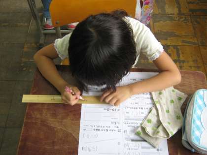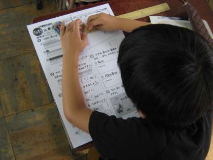 1センチメートルは何ミリメートルなのか,など長さの単位についても学習しています。細かい目盛りもがんばってよんでいます。