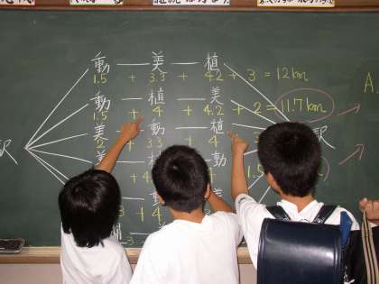 算数の時間に「場合を順序よく整理しよう」の学習をしました。樹形図を使ったり,表を使ったりして解いていきます。放課後に,その解き方について教え合っています。