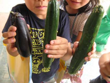 とても大きくなり,真っ赤なトマトもできました。まだ,小さかったきゅうりもとても大きくなりました。