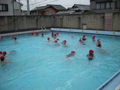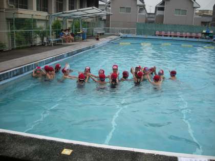 水にも慣れてきました。顔を付けたり,もぐったりも出来てきました。今日は,ちかてつごっこをグループごとにしました。水がかかったりして大変でしたが,頑張って出来ました。