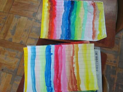 虹のように塗っていた色の列を並べました。