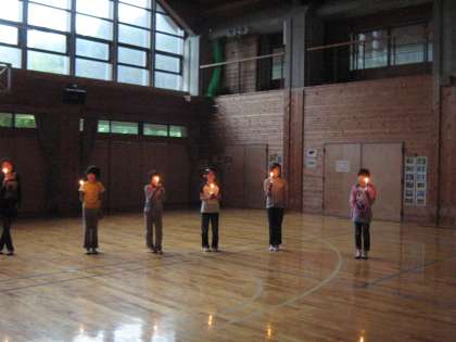 外は大雨でした。プレーホールでキャンドルファイヤーをしました。