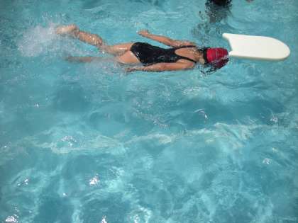 みずあそびで水中ドリブルを楽しく出来ました。二人組や三人組で協力し合って出来ました。