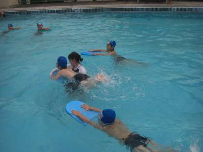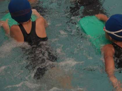 顔をつけるのが苦手でも,ビート板を使いながら少しずつ泳ぐ練習をがんばっています。