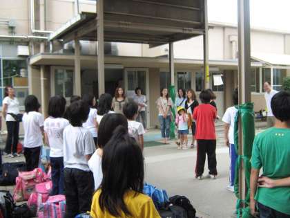 おうちの方,他の教職員のみなさんに迎えていただき,ほっとした表情を見せていました。