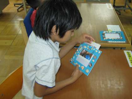 この前作ったフォトスタンドに、みさきの家の写真をいれました。すごくきれいに出来たので、写真をいれるともっと素敵になりました。
