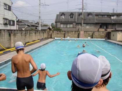 今日は1時間目に水泳学習がありました。はじめに水慣れをして,楽しく遊びました。そして,自分の課題にそって,練習しました。