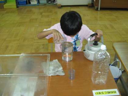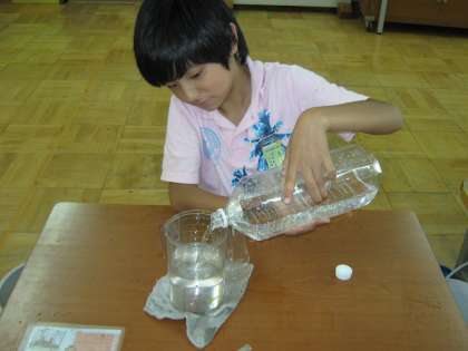 算数の学習で、水のかさを学習しました。リットルますやデシリットルますを使って水のかさをはかりました。