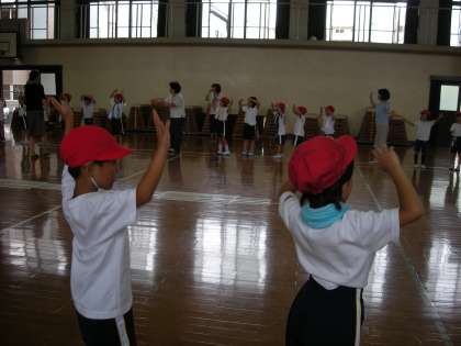 とっても楽しくなってきました。みんな踊ることが楽しくて仕方がありません。もう一回踊りたいとリクエストする一年生でした。