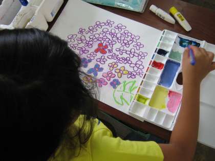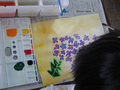 ひとつひとつの花に色を塗り,仕上げに背景も塗りました。みんなの作品がどう仕上がるのか楽しみです。