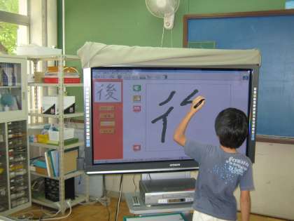 国語の時間に、漢字の学習をしました。電子黒板で、書き順について学習しました。