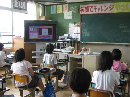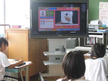 電子黒板の筆使いをしっかりとみながら,練習をしました。