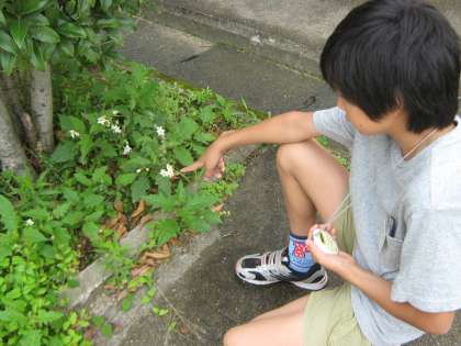 学校の中で、7月の植物探しをしていると見たことのない植物を見つけました。いつも気にとめないだけで有名な植物なのかもしれません。ご存知の方がいらっしゃったら教えてください。