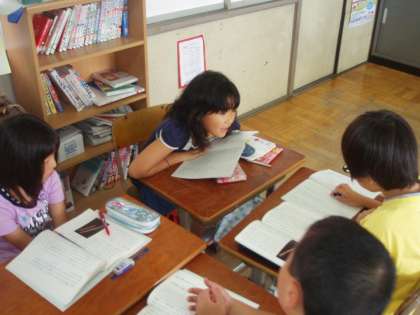 それぞれのまとまりの感想を班で交流し,読みを深めました。