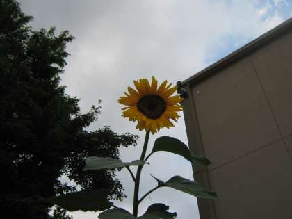 運動場横の花壇のヒマワリが,ぐんぐんのびてきました。