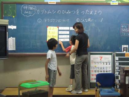 「生き物を調べよう(夏)」の学習で,カブトムシについて3組の友だちに教えてもらいました。