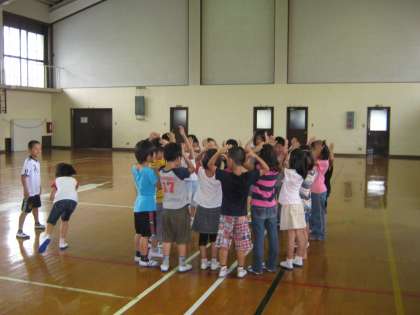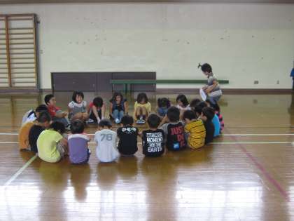 友達の誕生日を祝って,みんなで歌を歌ったり,ゲームをしたりして楽しく過ごしました。じゃんけん列車や,ハンカチおとし,震源地ゲームなど,いろいろなあそびをしました。