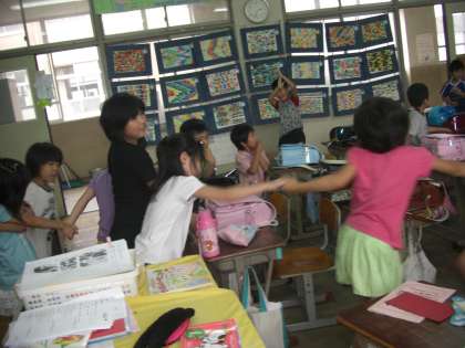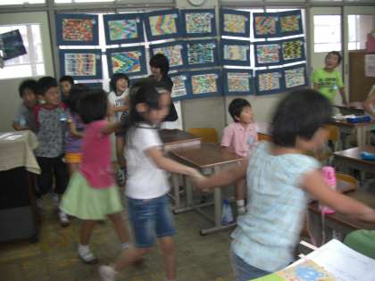 友達の手をはなさずに」と歌うのがだいすきです。自然に手をつなぎ