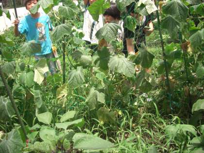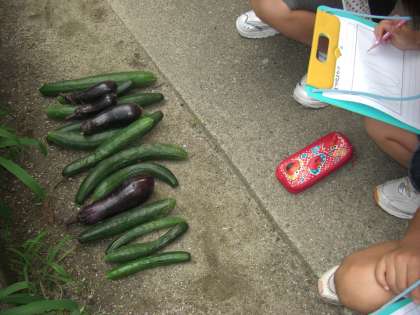 雨続きですが、きゅうりやなすびが大きくなってきています。