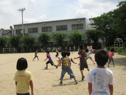 今日はとてもいいお天気でした!今日のみんなあそびはドッチボールでした。