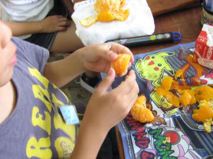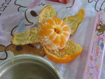 今日の給食のデザートはおいしいみかんでした。とても冷たくて食べると涼しくなりました。