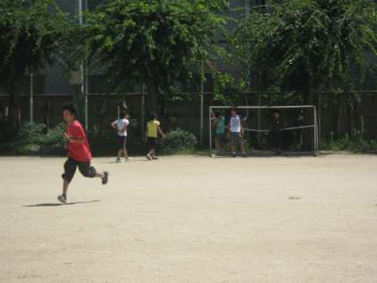 猛暑日にもかかわらず,みんなで鬼ごっこをしました。
