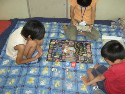 今日は、サマースクール2日目です。みんなで、鬼太郎のボードゲームをしました。いろんなミニゲームがあっておもしろかったです。