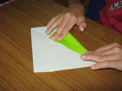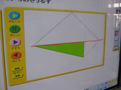 サマースクールの学習タイムに、折り紙を折りました。電子黒板で折り順をみて折りました。