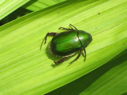 北庭で、アオドウガネを見つけました。コガネムシの仲間では、一番よく見かけます。でも植物の葉っぱを食い荒らすので、やっぱり害虫です。