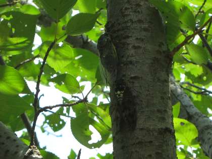おぼん休みも終わりました。まだまだ暑い日が続いています。ふと木に目をやると、アブラゼミとクマゼミが仲良く鳴いていたので思わず撮影しました。