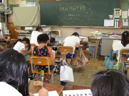 夏休みの作品発表会,自分の好きな絵や工作,手芸,習字など