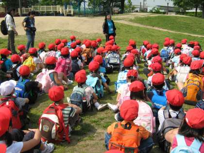 5月12日(火) 1年生初めての春の遠足で梅小路公園に行って来ました。2年生のおにいさん、おねえさんたちと一緒に,晴れわたる空の下,思いっきり走りまわったり,アスレチックの遊具で元気いっぱい遊んだりしました。おいしいお弁当を食べて,疲れも感じさせないくらい元気いっぱいに帰ってくることができました。