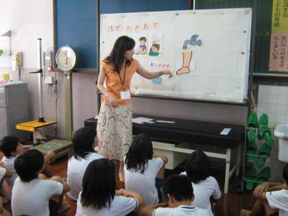 今日は,身体計測がありました。養護の先生から『けがの手当て』について教えていただきました。保健の授業で,ちょうど学習をしていました。みんな,しっかりと話を聞いていました。