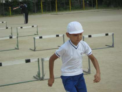 ハードル走の練習をしました。まだまだ暑いけど頑張っています。