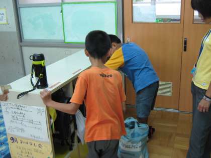 道徳の時間に、できるかなゲームをしました。どんなものかというと、指令カードを引き、そのカードに書かれていることが出来るかどうか、というゲームです。指令に従い、ロッカーの整理をしたり、本だなの整理をしたりいろんなことをしました。終わった後は、とてもすっきりした気分になりました。