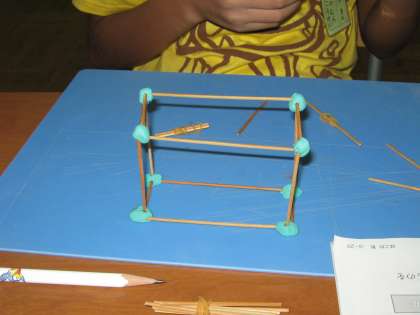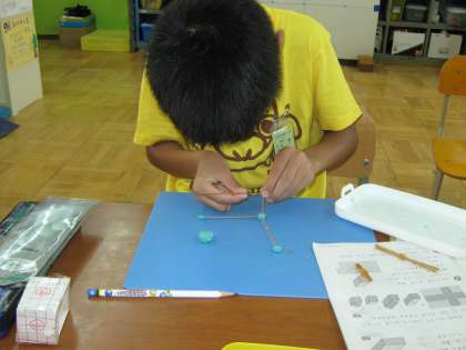 今日、算数の学習で箱作りをしました。たけひごを使って、つなぎにねん土をつかいました。すごく難しかったです。