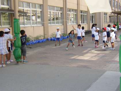 今日は,1か月に1度のたてわり遊びです。6年生は,下級生のリーダーシップをとって楽しく遊べるように進めています。