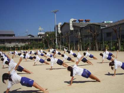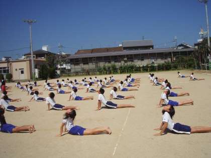 今日から運動場で練習です。