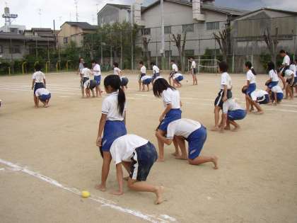 曲に合わせて,集中して演技をする高学年!よく頑張っています。