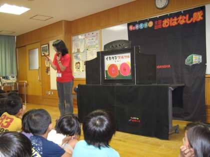キャラバンカーの見学の後は,楽しいお話の読み聞かせをしていただきました。