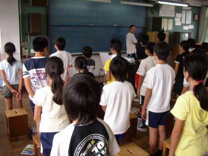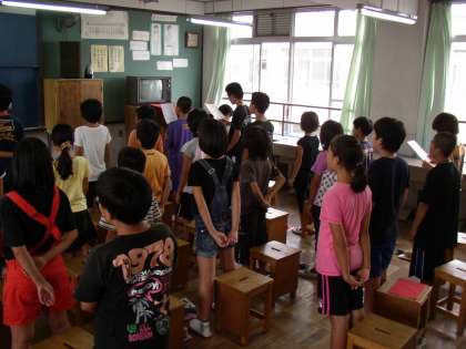 「愛のパレード」の向けて,6年生1・2組合同で音楽室で練習しました。